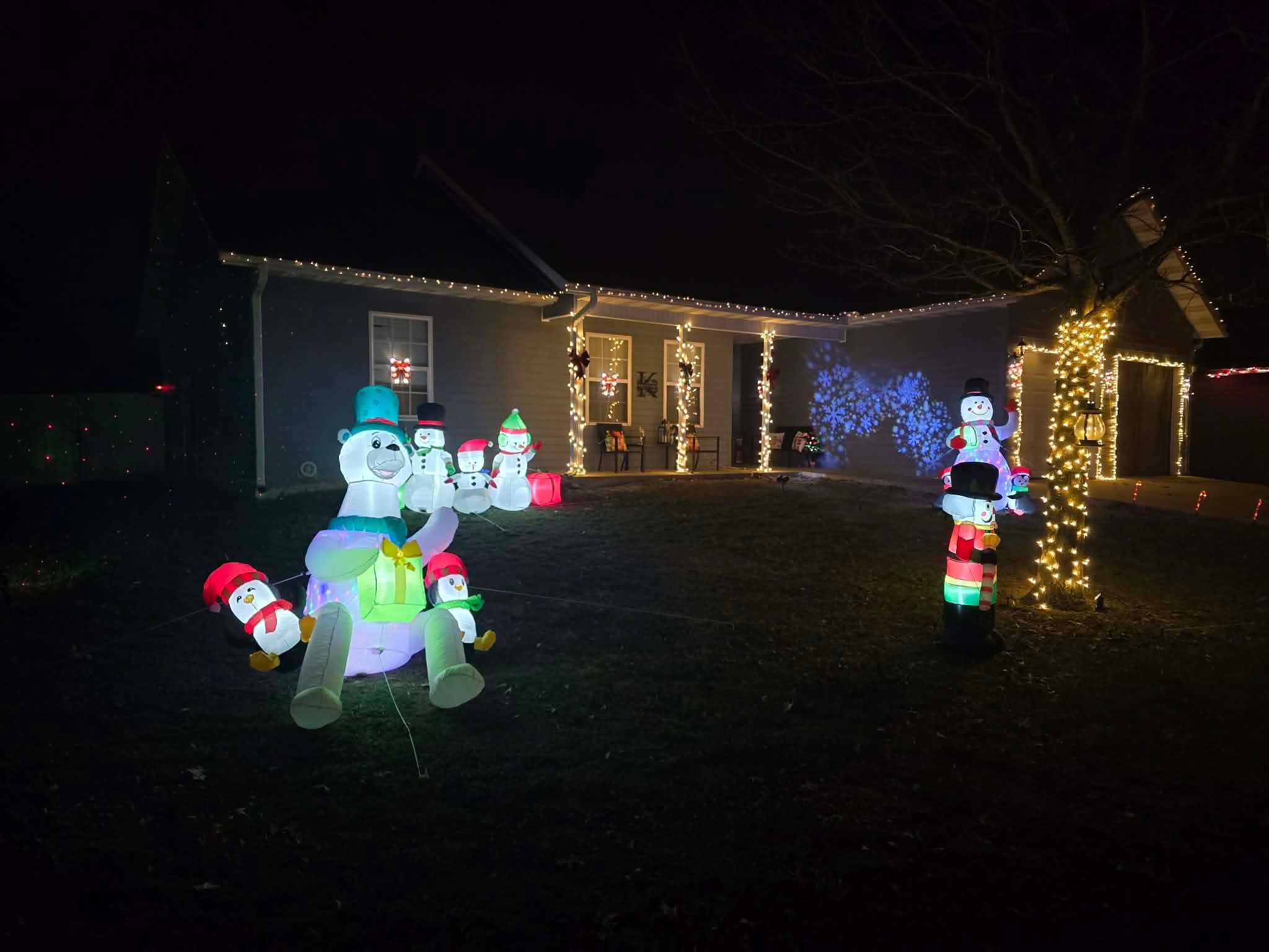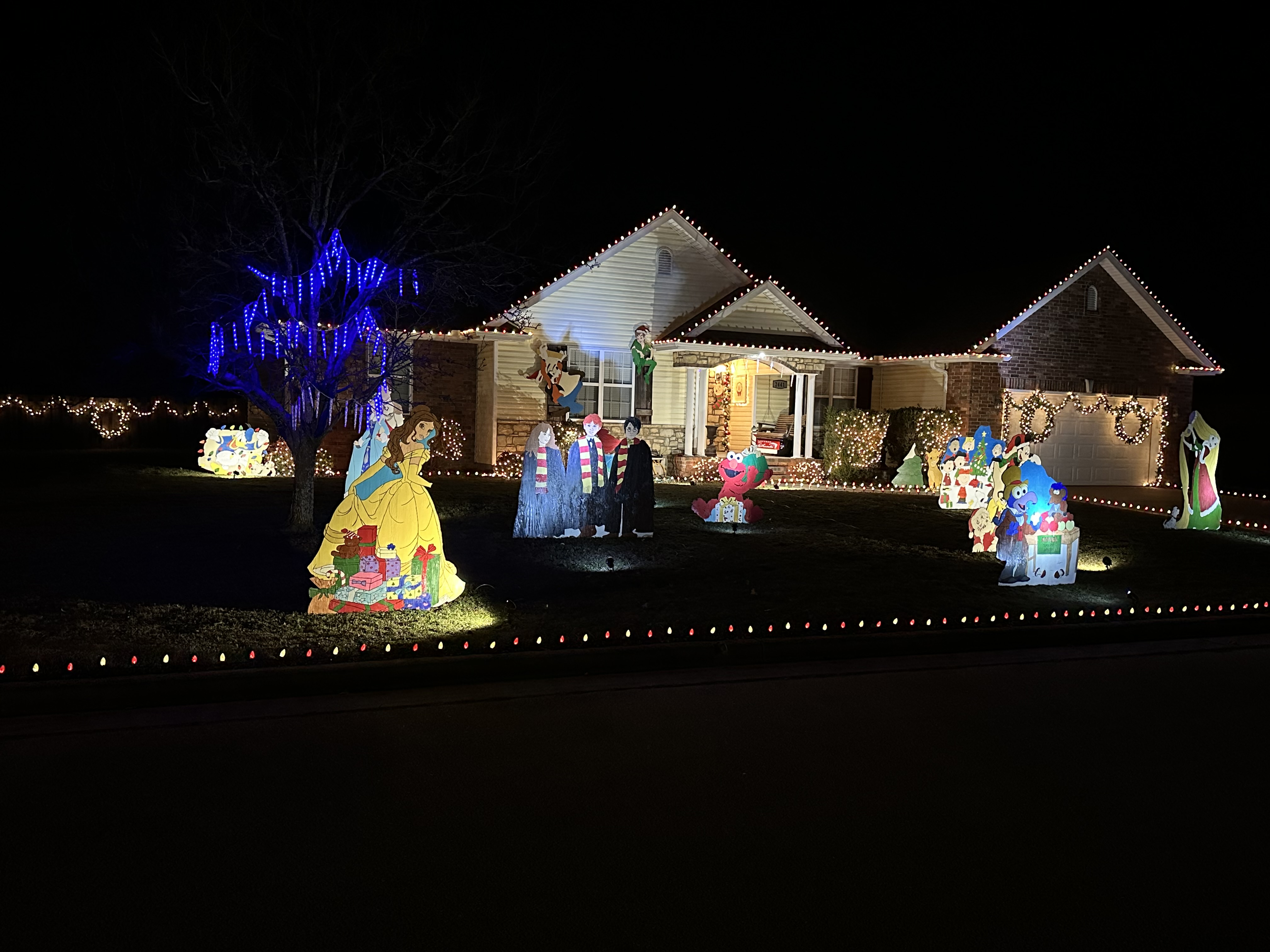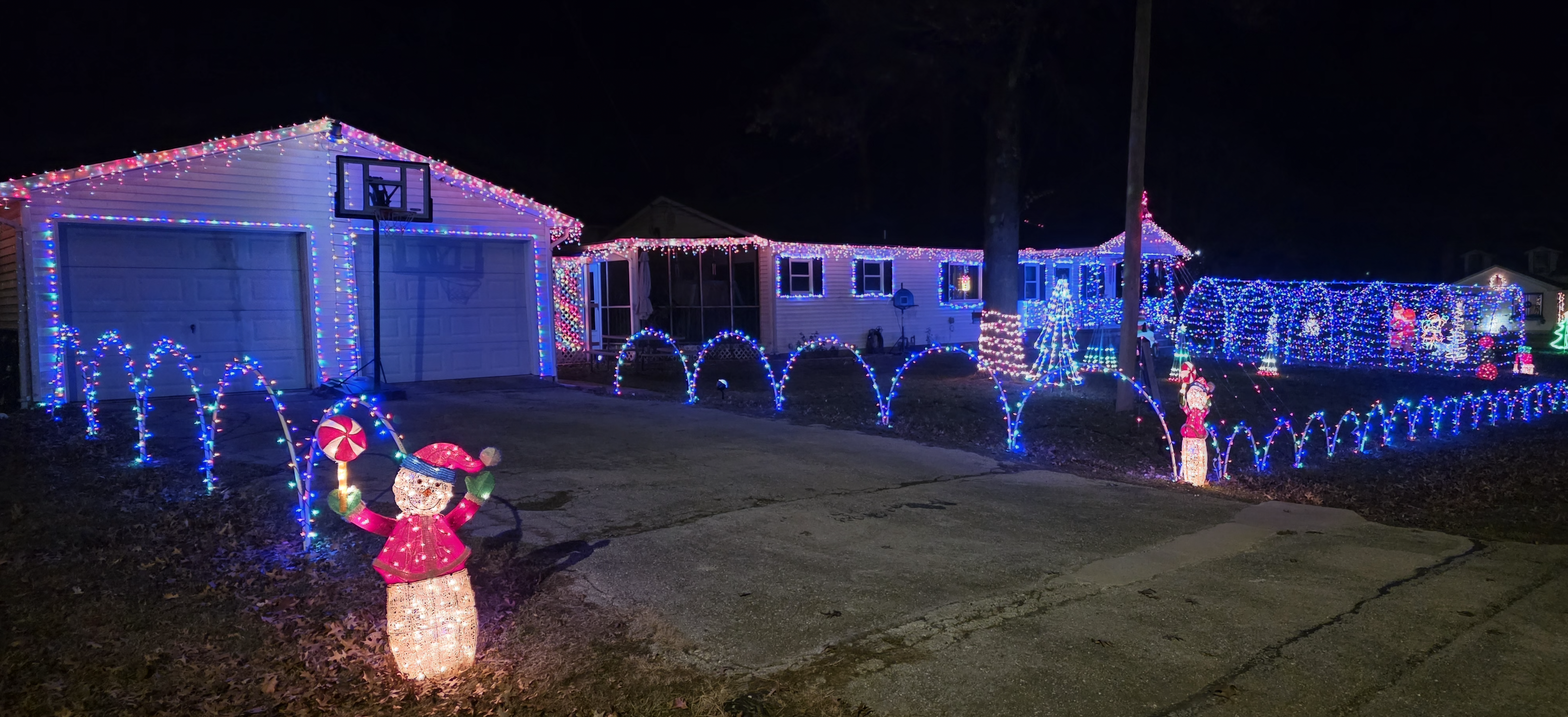 Entry Comments: We bought our house 3.5 years ago coming from a small apartment and each year we enjoying spending our time outside listening to the Christmas music making our display bigger each year with such a huge yard to do so. We get compliments every time we are outside working from everyone who passes by and our neighbors telling us they love our decorations and love us being there. So come by and see our display even stop for a picture under our lighted tunnel! Merry Christmas Carthage!