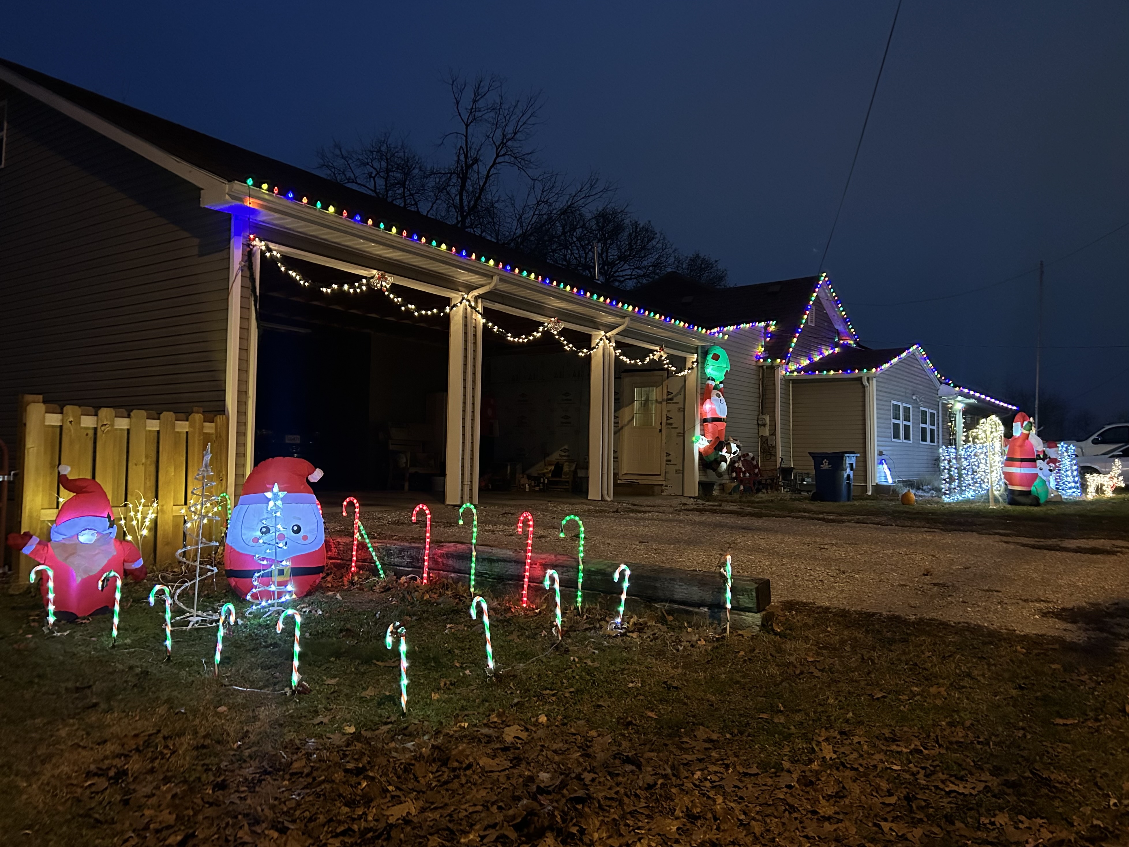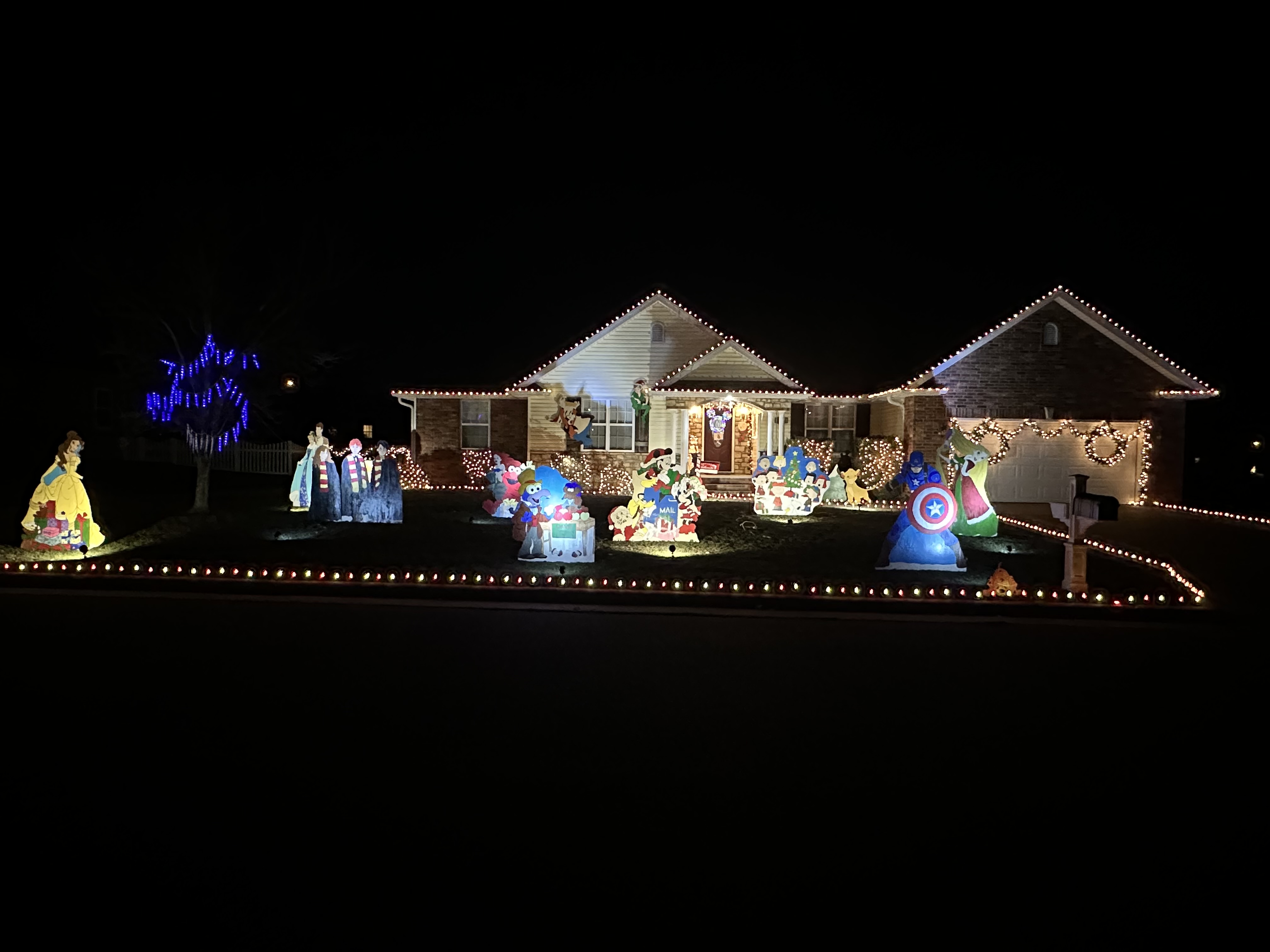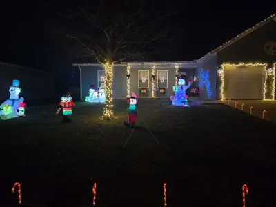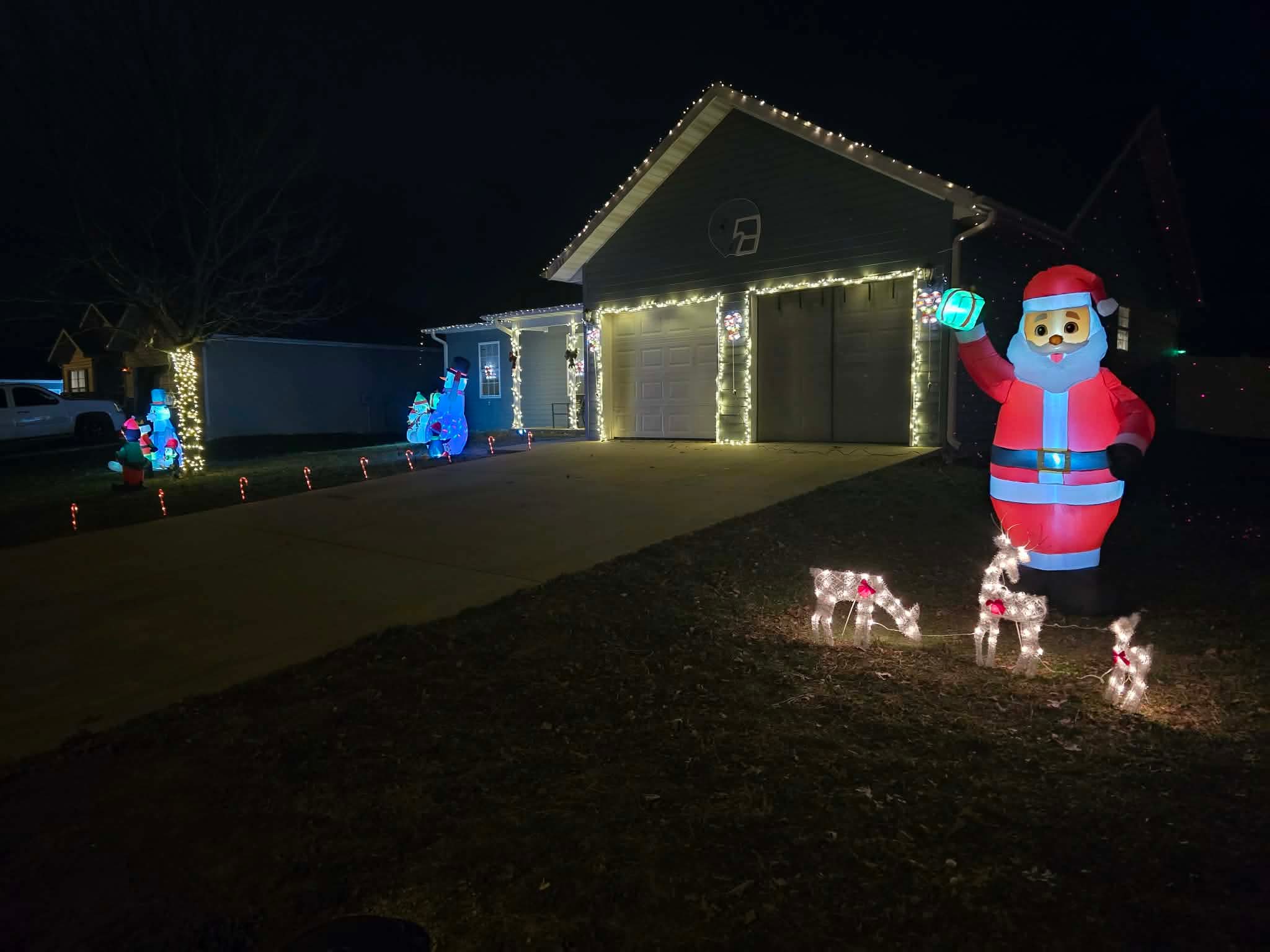 Entry Comments: We bought our house 3.5 years ago coming from a small apartment and each year we enjoying spending our time outside listening to the Christmas music making our display bigger each year with such a huge yard to do so. We get compliments every time we are outside working from everyone who passes by and our neighbors telling us they love our decorations and love us being there. So come by and see our display even stop for a picture under our lighted tunnel! Merry Christmas Carthage!