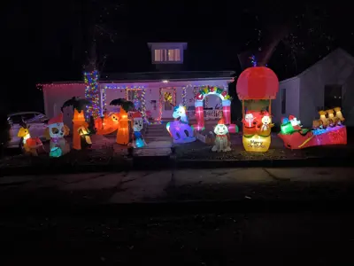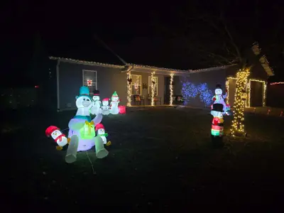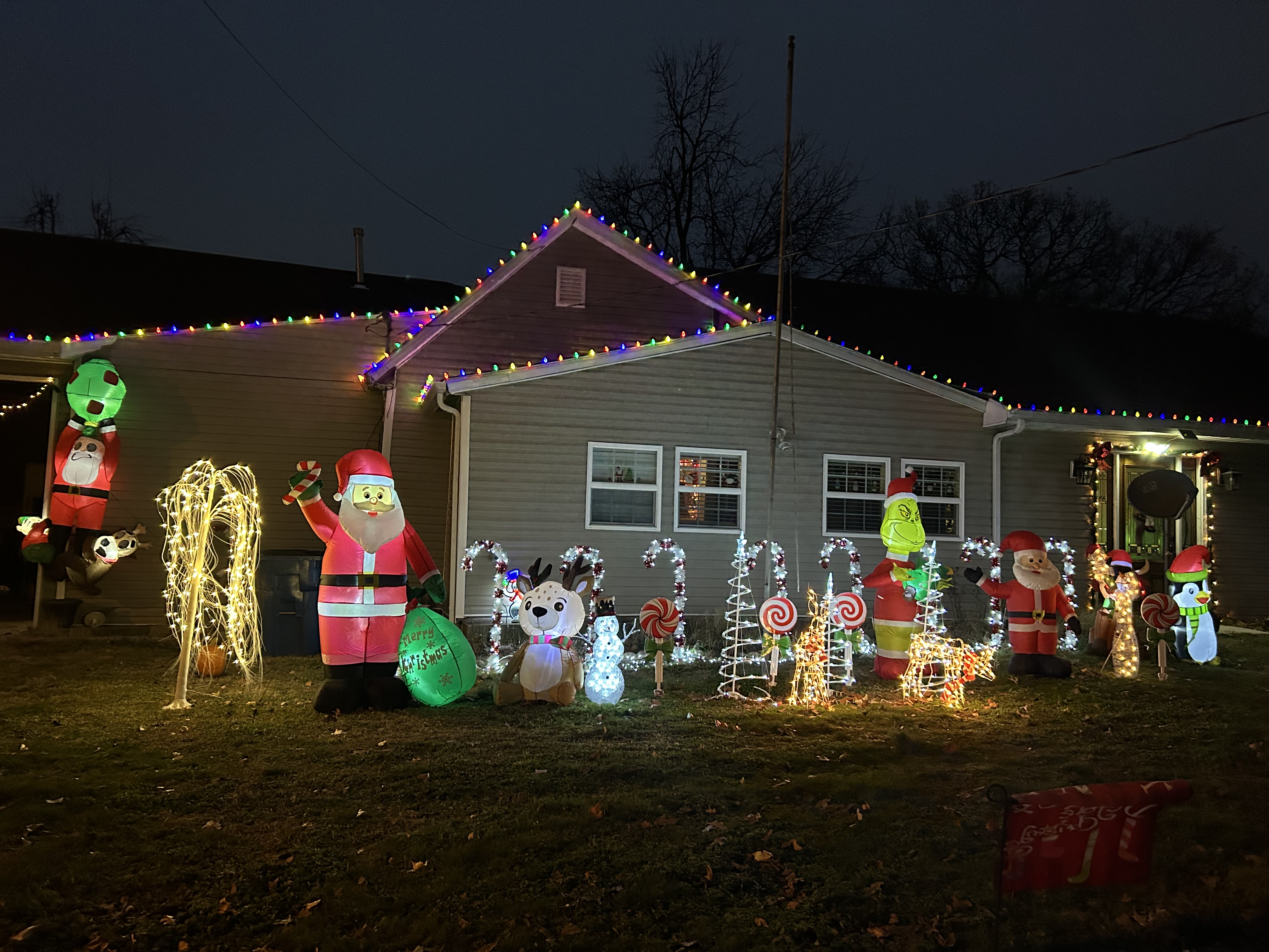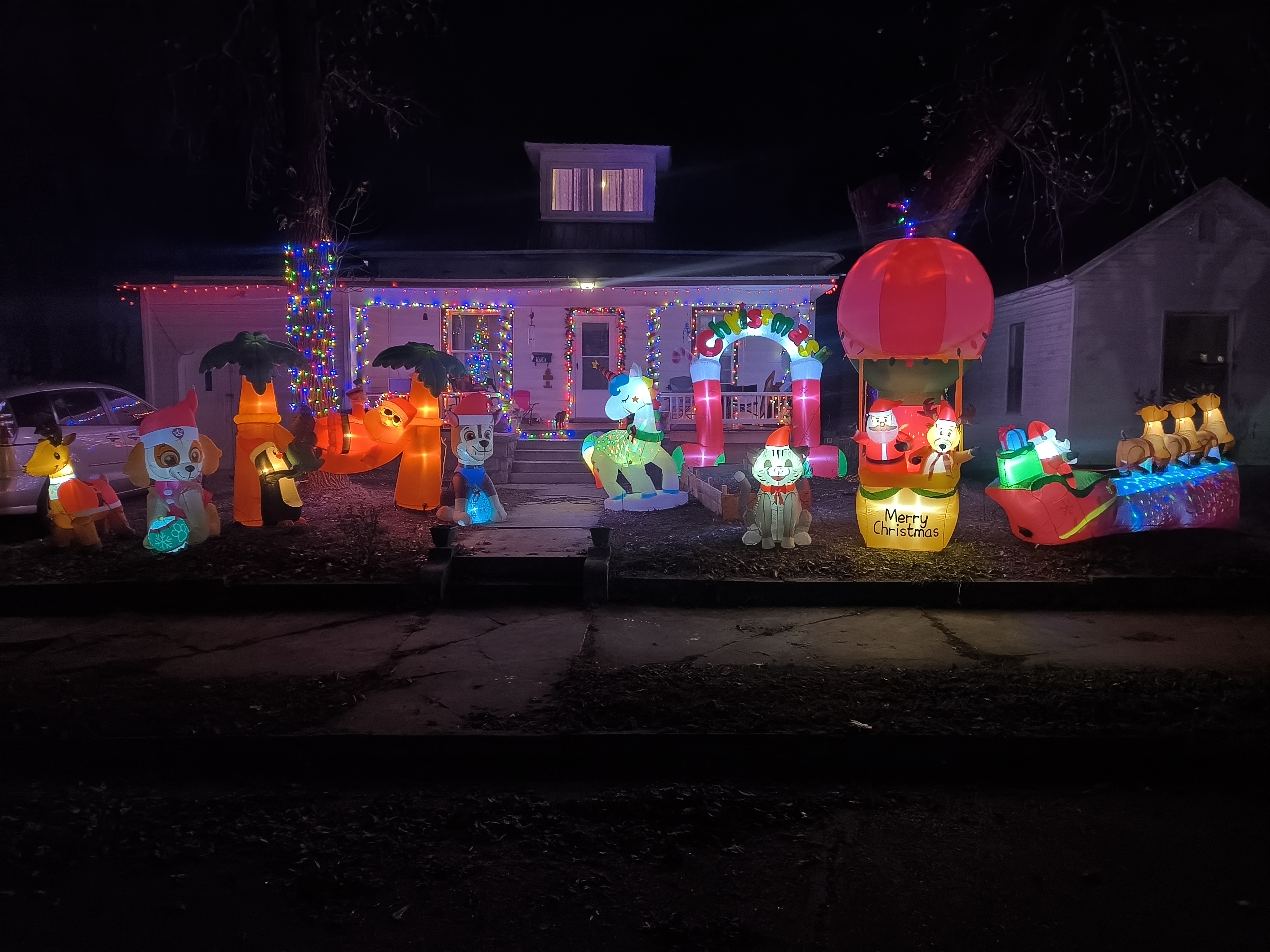 Entry Comments: We don’t have a particular theme showcased but love to show our neighborhood the Christmas spirit and holiday cheer! We have inflatables from Santa and his reindeer falling down the house to candy canes and snowmen. We hope everyone loves our display as much as we enjoyed putting it together for everyone to see!